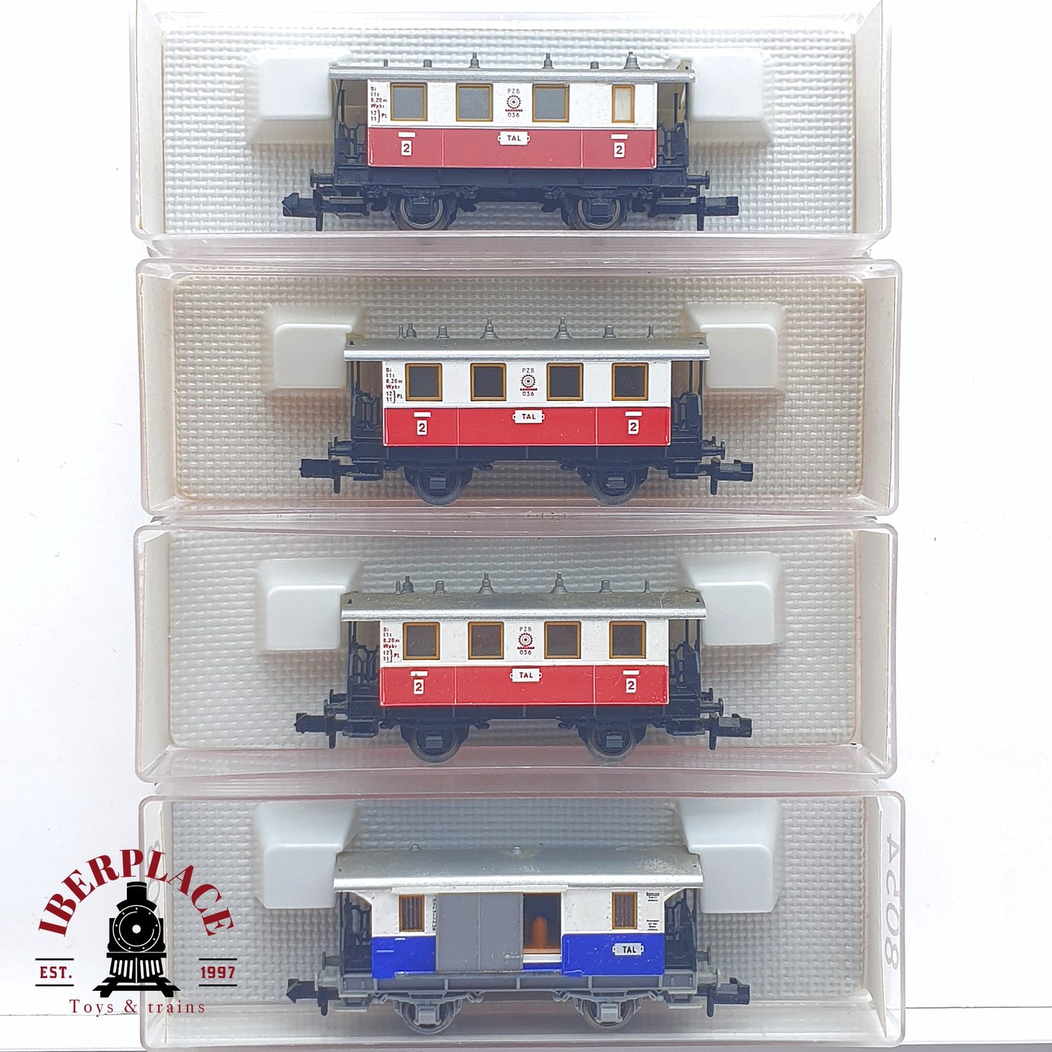 ♻️ 2 mano - Fleischmann 4x vagones pasajeros PZB 056 clase 2 N escala 1:160 TEN06