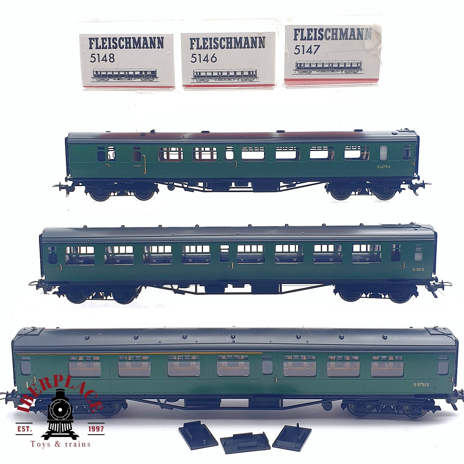 ♻️ 2da mano - DC Fleischmann 3x vagones pasajeros Ferrocarriles Británicos H0 escala 1:87