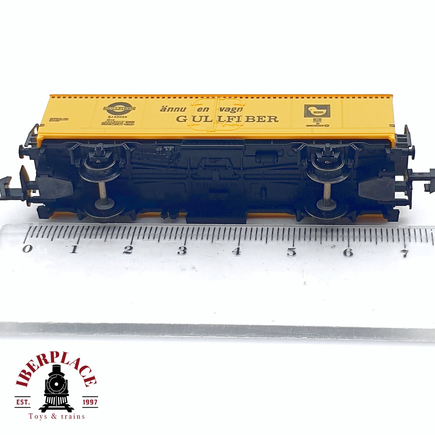 ♻️ 2da mano - Fleischmann 8323 vagón cerrado Gullfiber SJ 53034 amarillo N escala 1:160