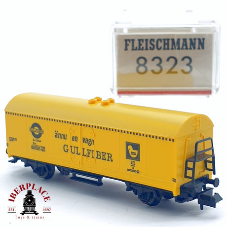 ♻️ 2da mano - Fleischmann 8323 vagón cerrado Gullfiber SJ 53034 amarillo N escala 1:160