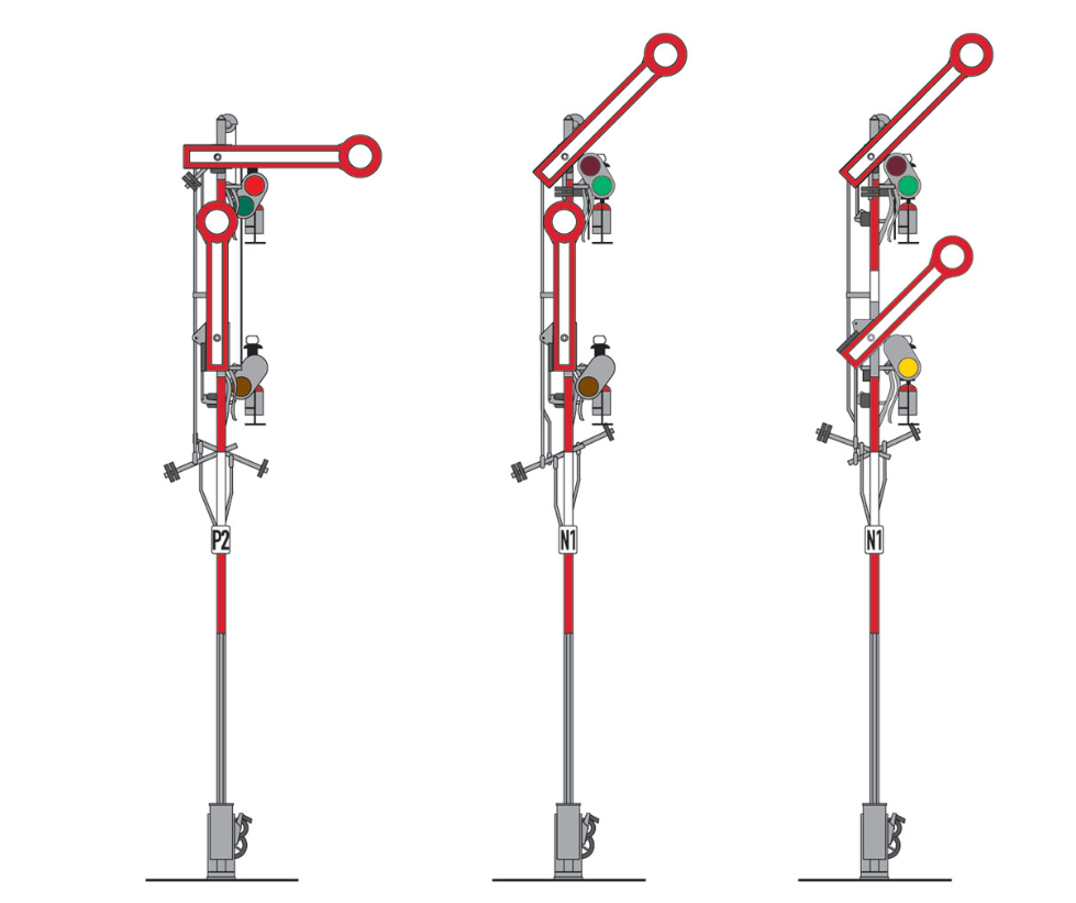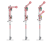 Con 2 aletas no acopladas y poste estrecho interrumpido. Conmutación de rojo a verde o rojo a verde/amarillo.