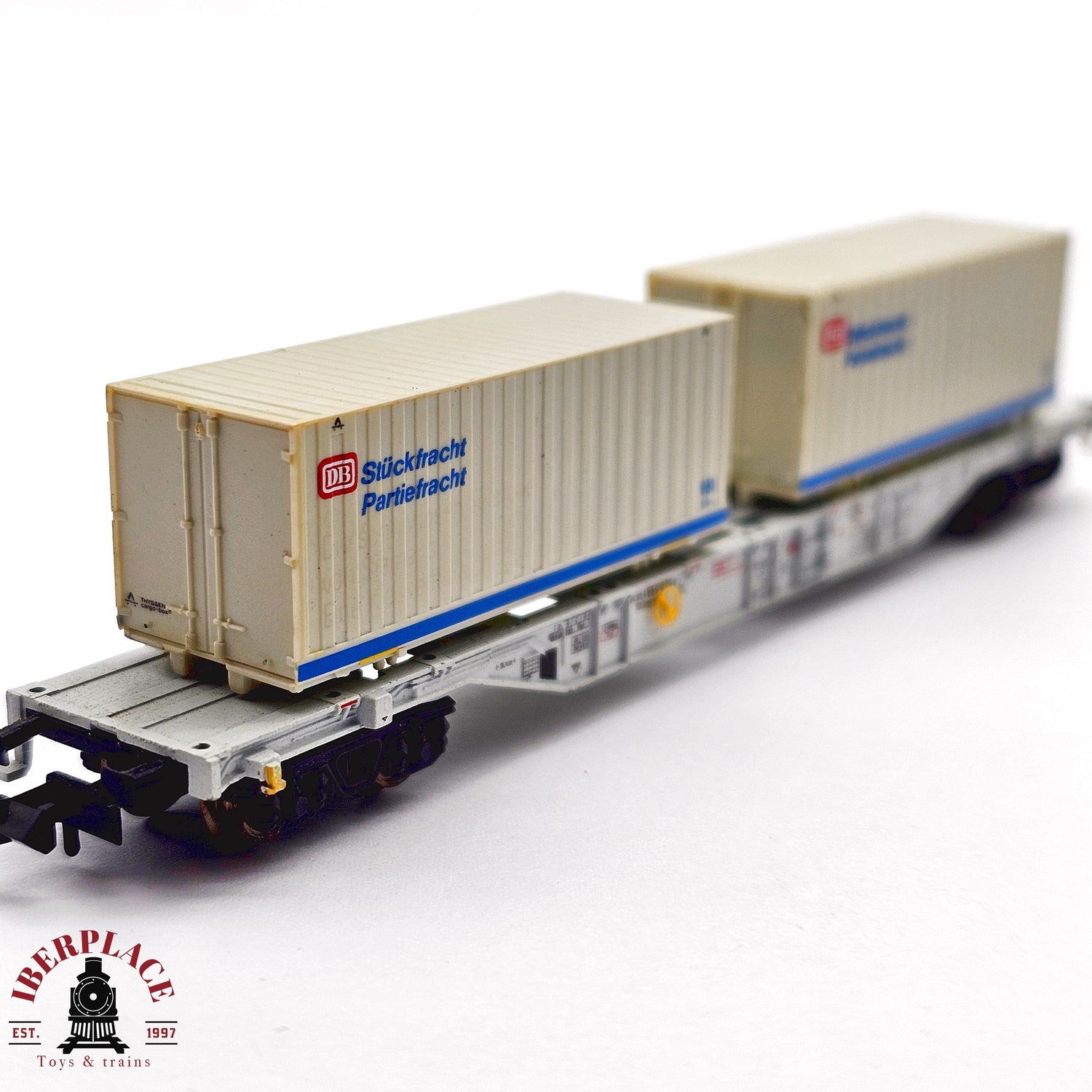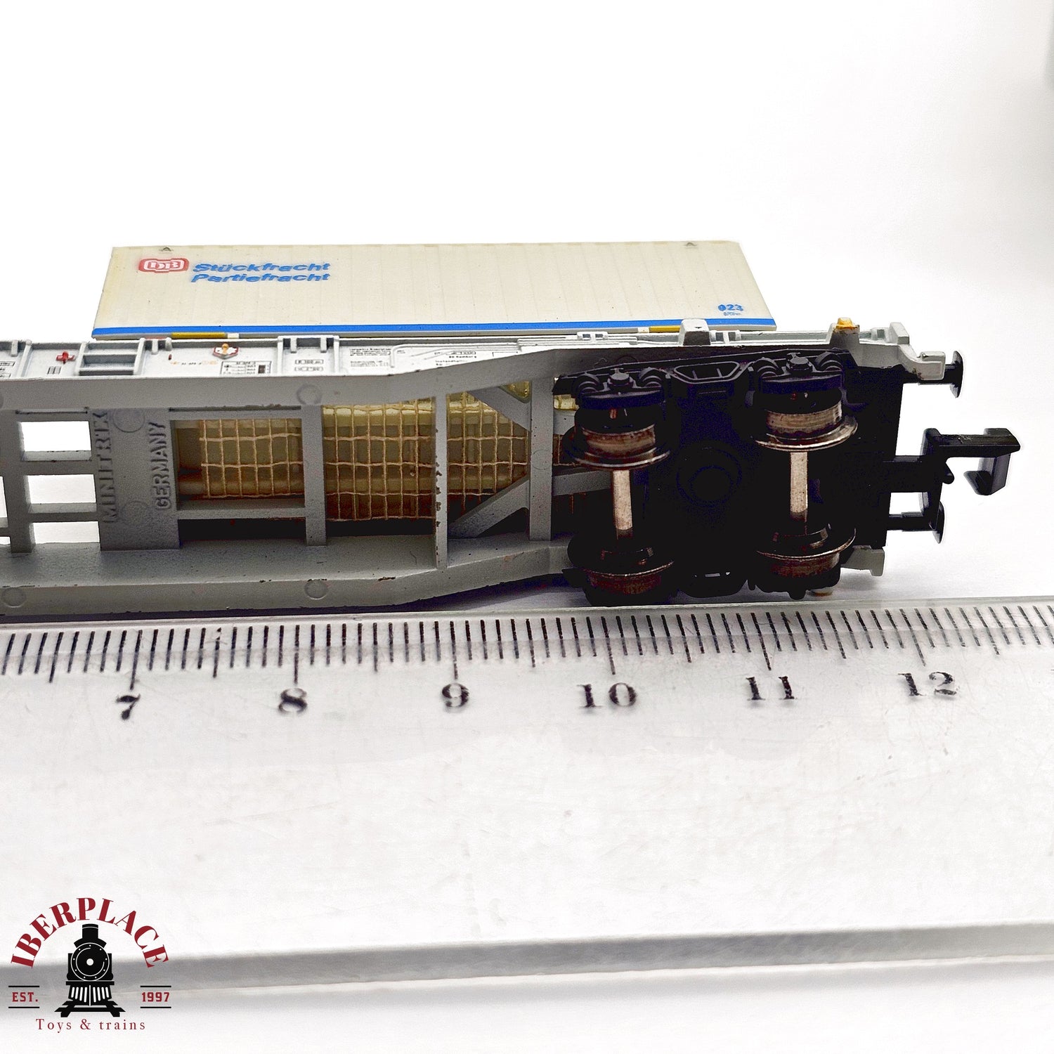 ♻️ 2da mano - Minitrix 13823K vagón contenedores Stückfracht Partiefracht DB N escala 1:160 E13