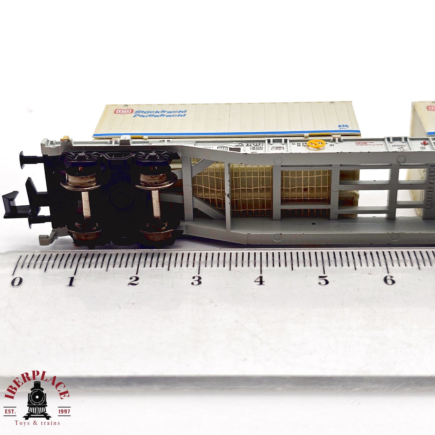 ♻️ 2da mano - Minitrix 13823K vagón contenedores Stückfracht Partiefracht DB N escala 1:160 E13 está agotado y se enviará tan pronto como vuelva a estar disponible.