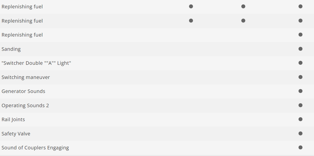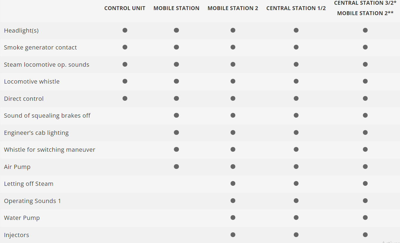 Con decoder digital mfx+ y numerosas funciones de sonido. Accionamiento regulado de alta potencia con volante de inercia dentro de la caldera. Tracción en 5 ejes. Aros de adherencia. Locomotora y ténder de aceite en su mayor parte de metal. Con preinstalación para kit de humo 7226. Señal de cabeza de tres luces con alternancia en función del sentido de la marcha y kit de humo equipable a posteriori, de funcionamiento convencional, gobernables en digital. Iluminación de cabina de conducción gobernable además en digital. Iluminación con LEDs blanco cálido exentos de mantenimiento. Enganche corto con cinemática entre locomotora y ténder. En la parte posterior del ténder y en la parte frontal de la locomotora, enganche corto guiado por cinemática con caja de fijación de enganche según NEM. Radio mínimo describible 360 mm. Se adjuntan tubos protectores de vástagos de émbolos, mangueras de freno y enganches de tornillos de imitación.