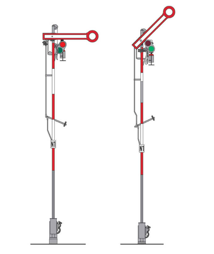 Con una aleta y poste estrecho interrumpido. Conmutación de rojo a verde.