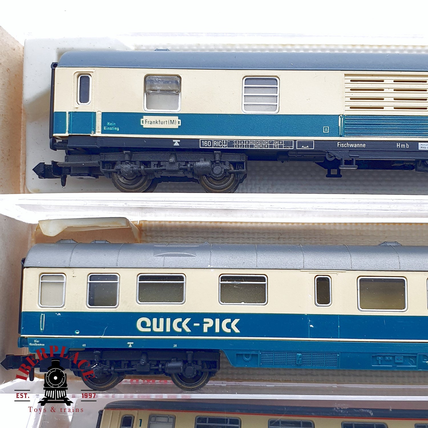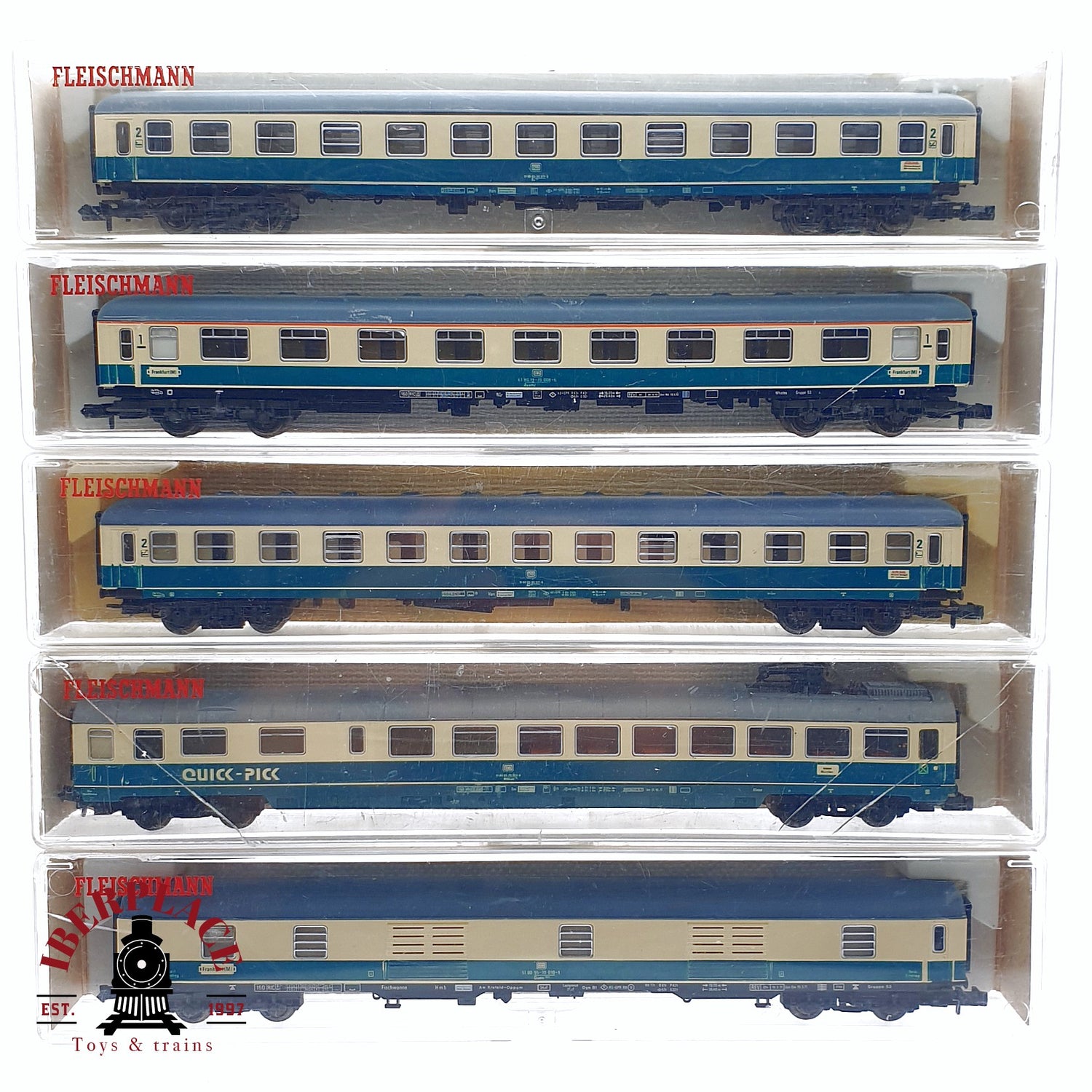 ♻️ 2da mano - 4x Fleischmann 7432 8190 8100 8199 vagones pasajeros y equipaje DB N escala 1:160