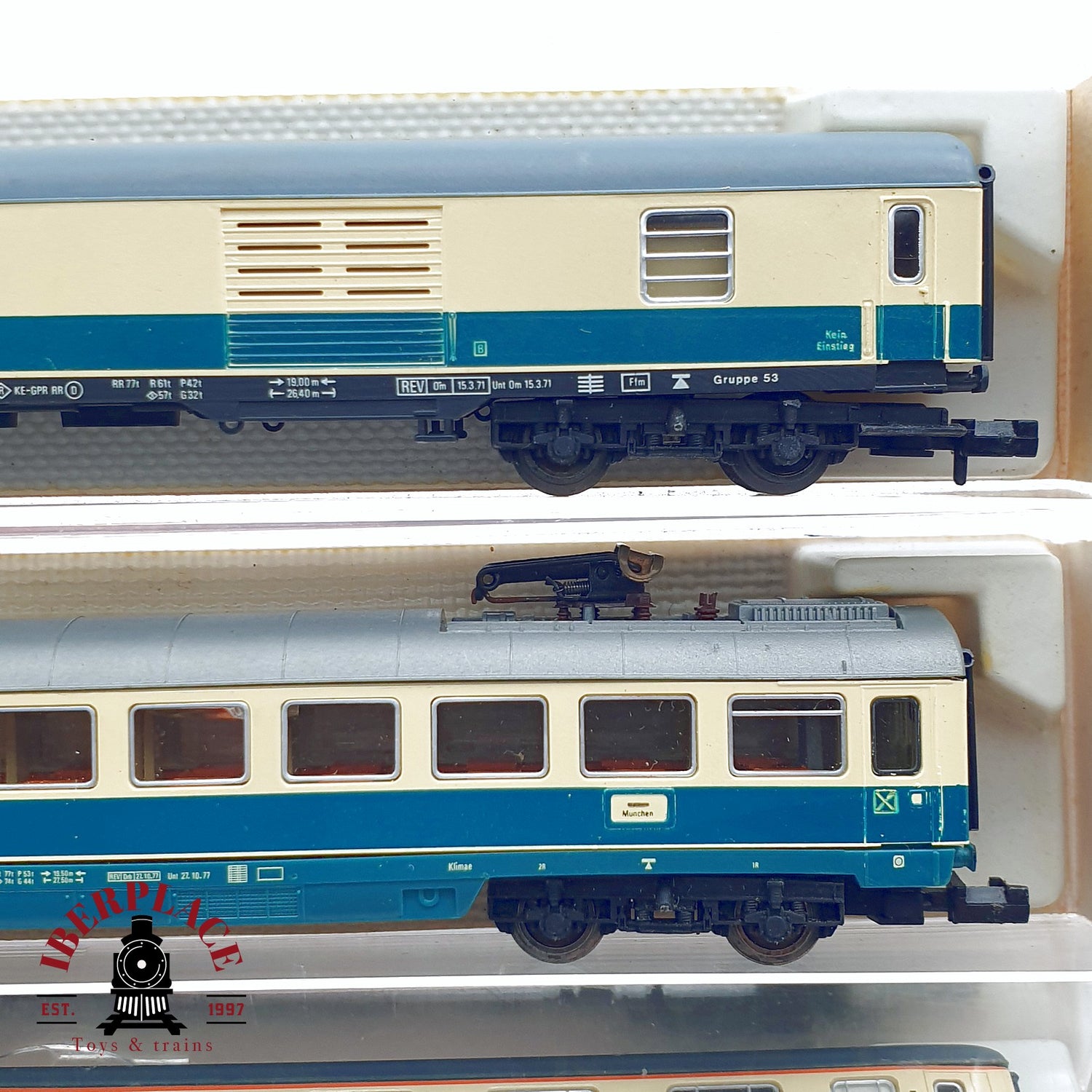 ♻️ 2da mano - 4x Fleischmann 7432 8190 8100 8199 vagones pasajeros y equipaje DB N escala 1:160 is nabesteld en wordt verzonden zodra het weer op voorraad is.
