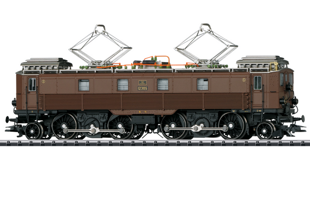 Modelo real: Locomotora eléctrica Be 4/6 "Stängelilok" de los Ferrocarriles Federales Suizos (SBB). Ejecución en el estado en que se suministraba. Locomotora de la primera serie constructiva. Pintada en color base marrón oscuro con tren de rodaje negro. Con tope de barra, puertas de cabina de conducción en testero con chapas de intercirculación, con arenero, sin señal de falso arranque y sin imán de sistema Integra-Signum. Serpentinas de refrigeración en laterales con 6 soportes verticales. Número de explotación de la locomotora 12305. Estado de servicio de mediados de los años 20.